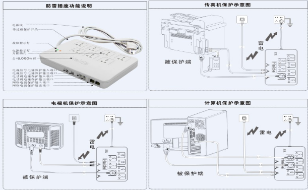 性能簡介: 本系列產品適用于單相電源線路的雷電及電涌的精細級設備保護,通用七孔插孔設計適合多種形狀電源插頭,特別適用于辦公及家庭電氣設備簡單的雷電防護,內置自動保護裝置,故障時自動脫離電網,從而保護電子設備工作正常,并搭配有網絡、電話、電視防雷三種功能合一,并帶有工作失效狀態(tài)指示燈。