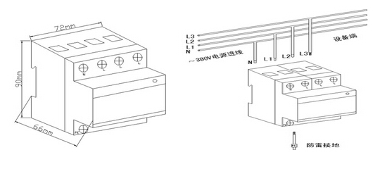 電源相線(L)、零線(N)分別接入電涌保護(hù)器相應(yīng)接線端子,保證牢固及可靠,將避雷器接地端與防雷地線(推薦接地電阻≤4Ω)作良好電氣連接。