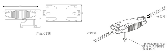 在被保護設(shè)備的線路接口前端串聯(lián)接入避雷器,“OUT”為設(shè)備端、“IN”為進線端,將避雷器接地端與防雷地線(推薦接地電阻≤4Ω)作良好的電氣連接。