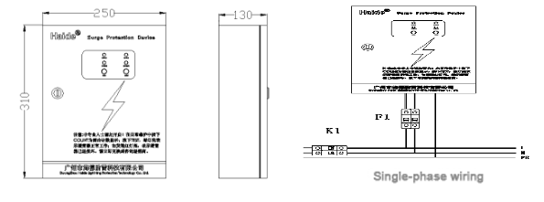 Plug the power phase line (L) and null line (N)into corresponding connector of the electric surge protector and make sure it's firm and reliable. Connect the ground terminal of arrester with the ground lead of lightning protection well (recommended earth resistance ≤4Ω).